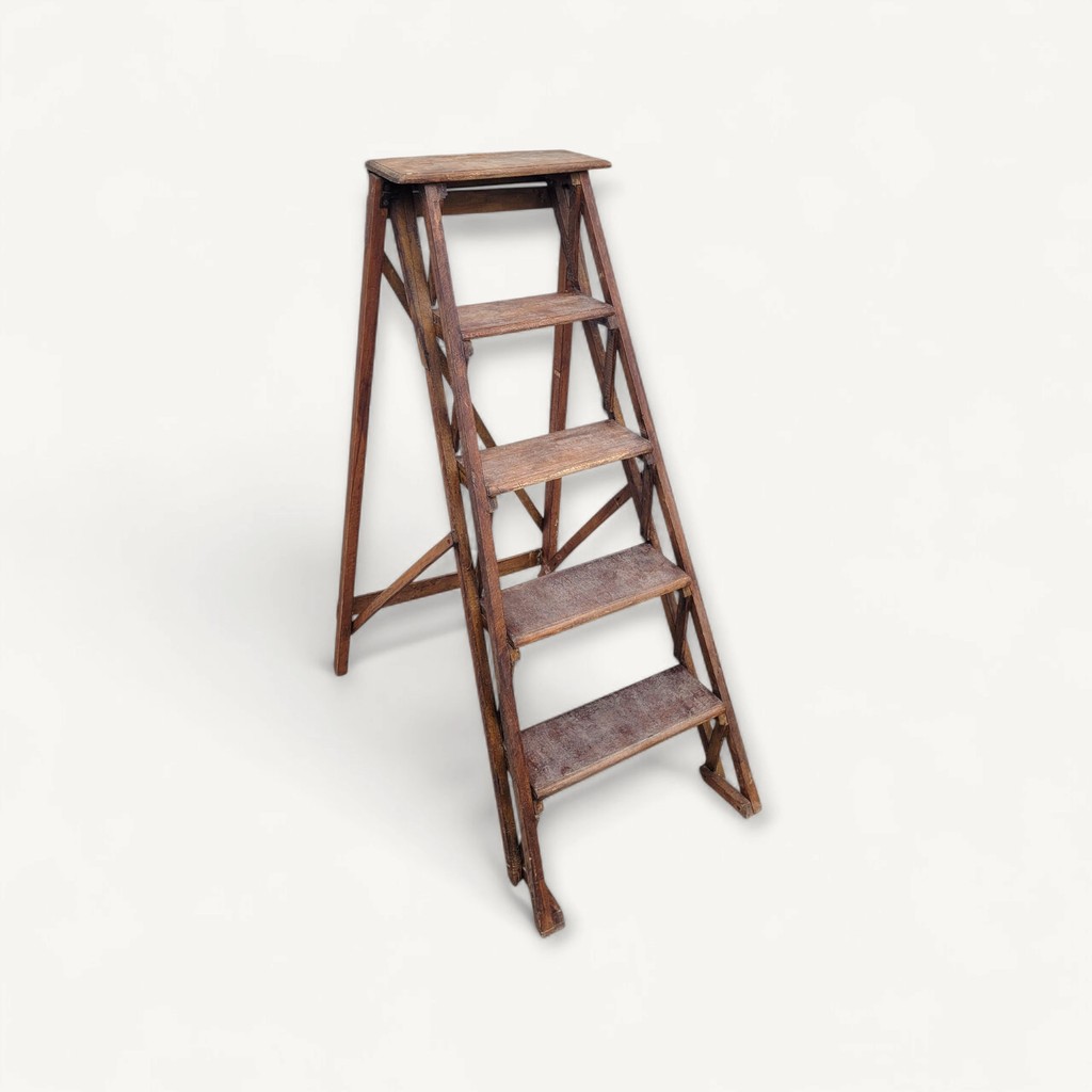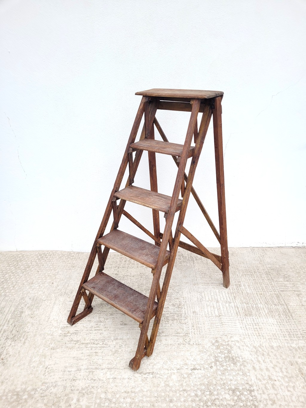 C’est un modèle à 5 marches, en bois teinté foncé.