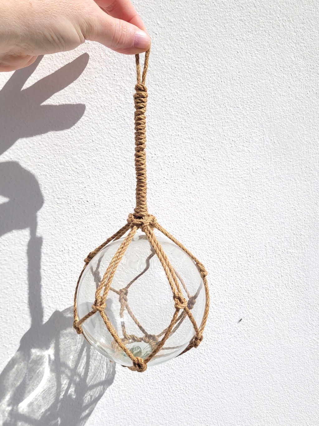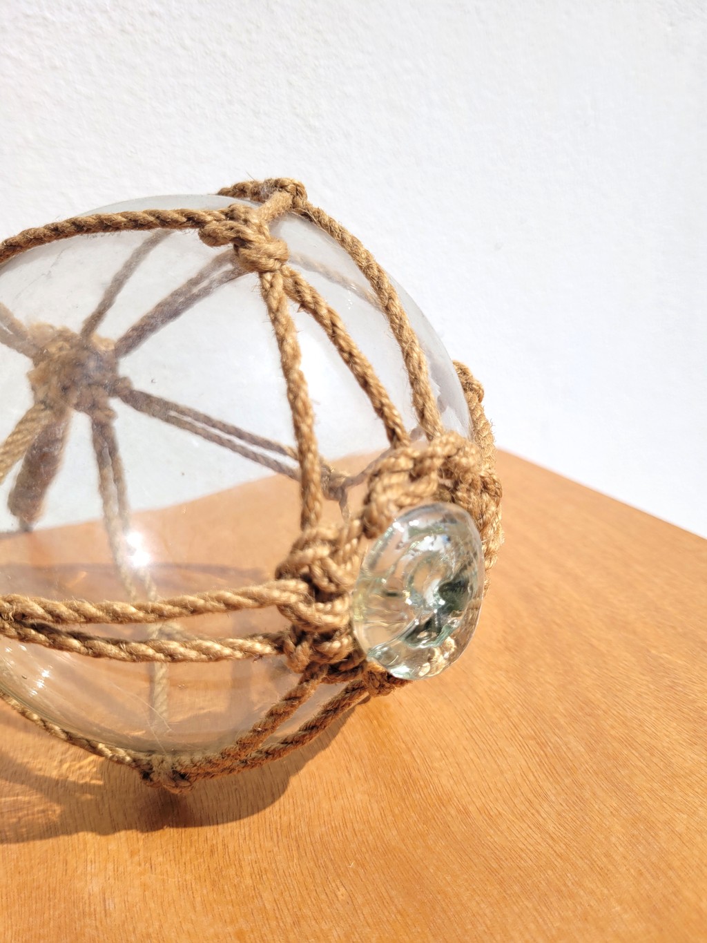 On retrouve ici une fabrication traditionnelle, avec un verre soufflé bouche et une corde en chanvre nouée à la main.