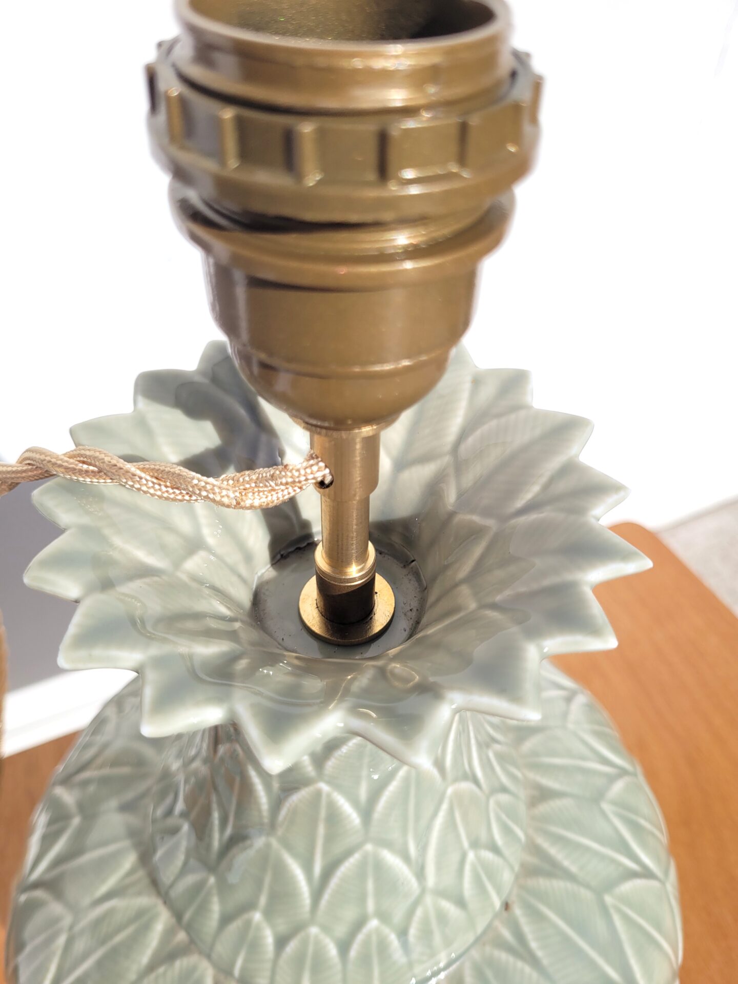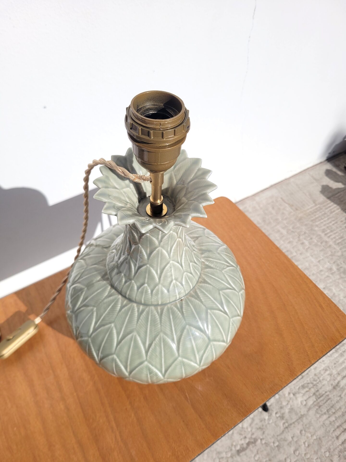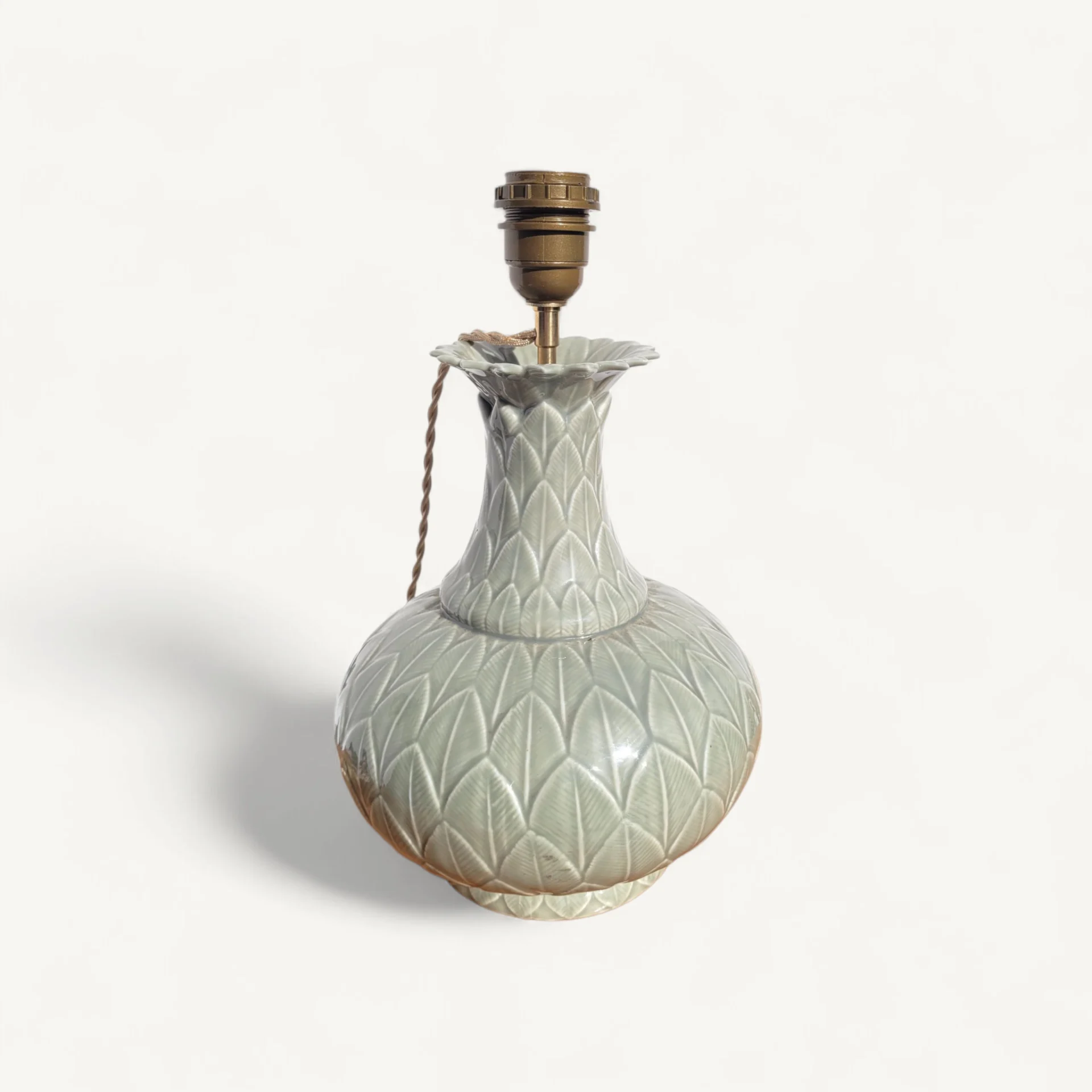 La céramique est en parfait état et l’électricité est neuve, montée avec soin, de la prise à la douille (E27), avec une jolie rehausse en laiton doré.