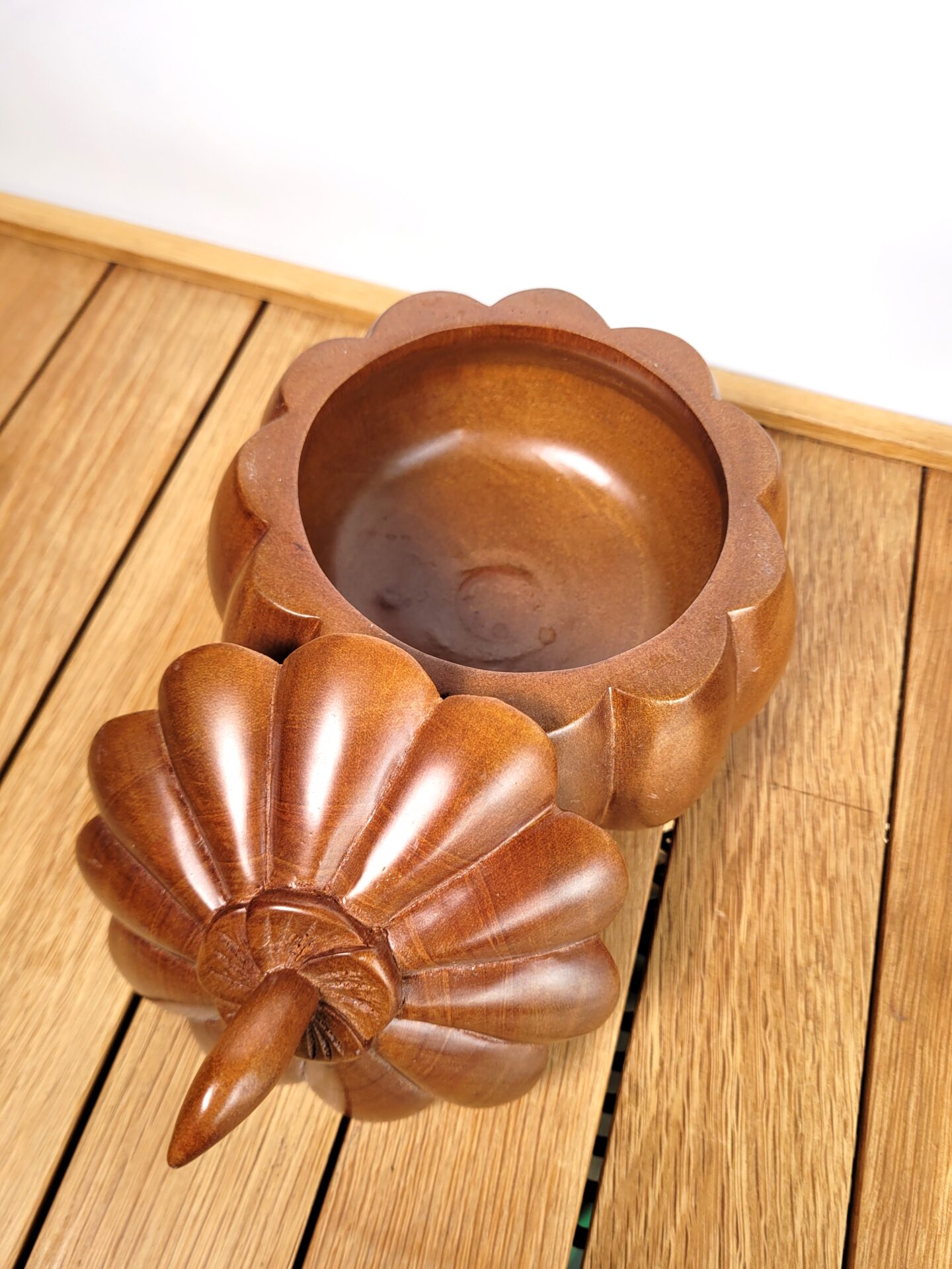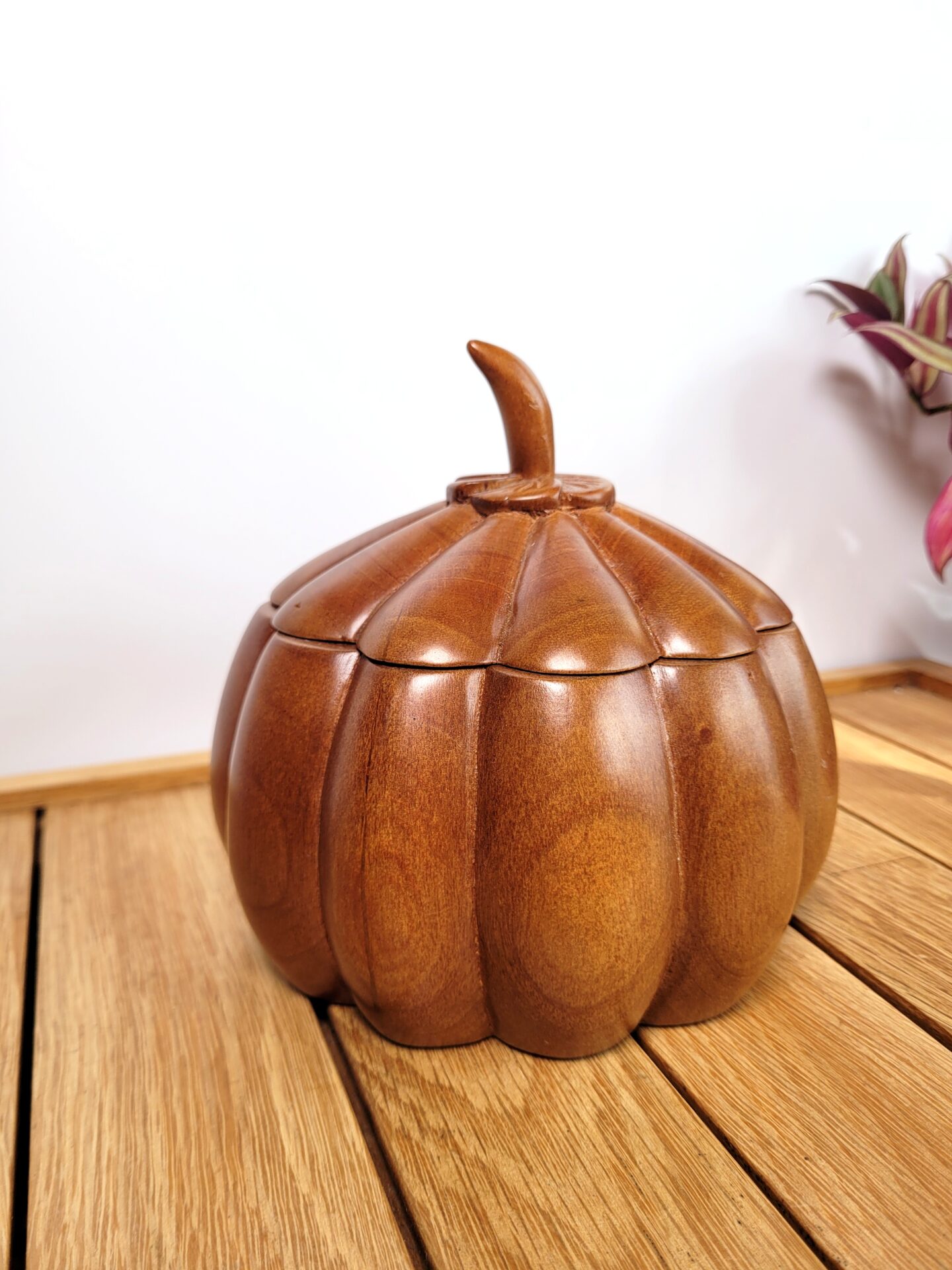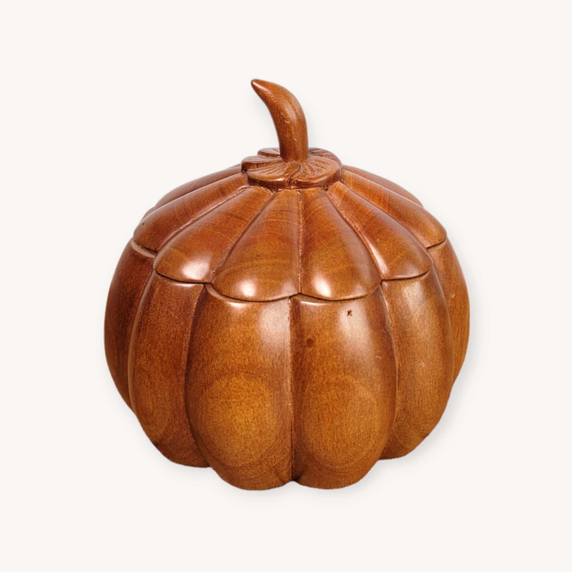 Boîte en bois sculpté formant une citrouille