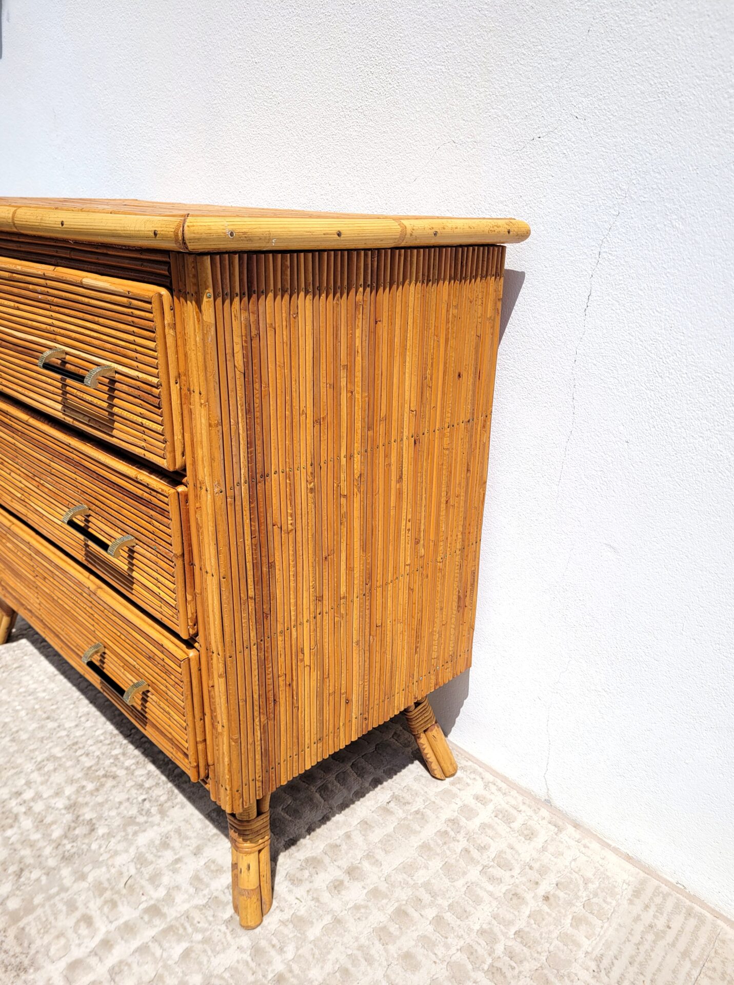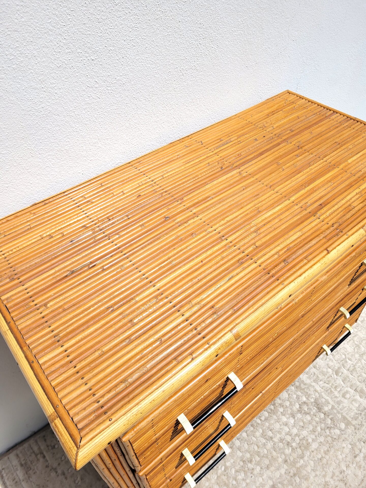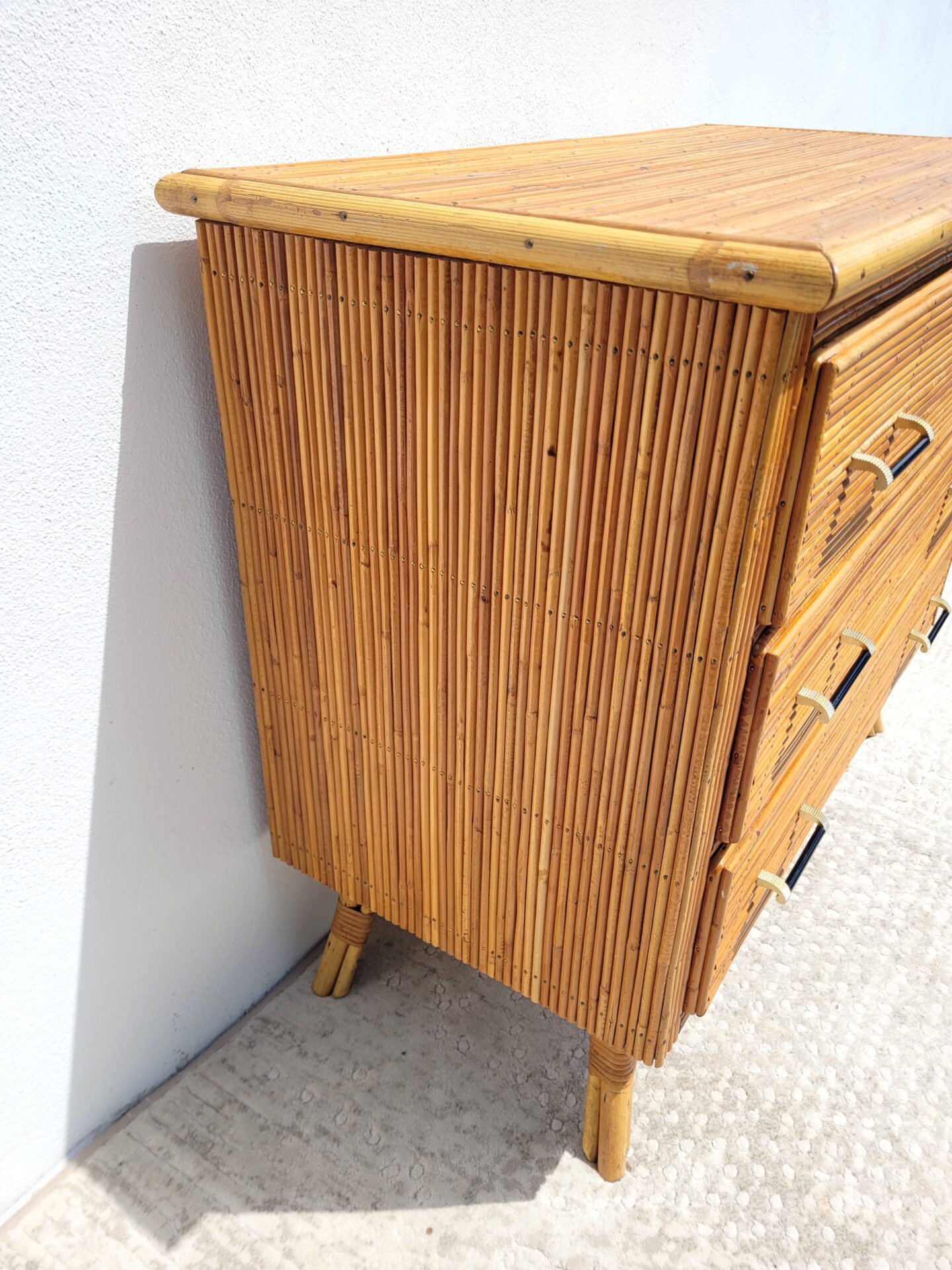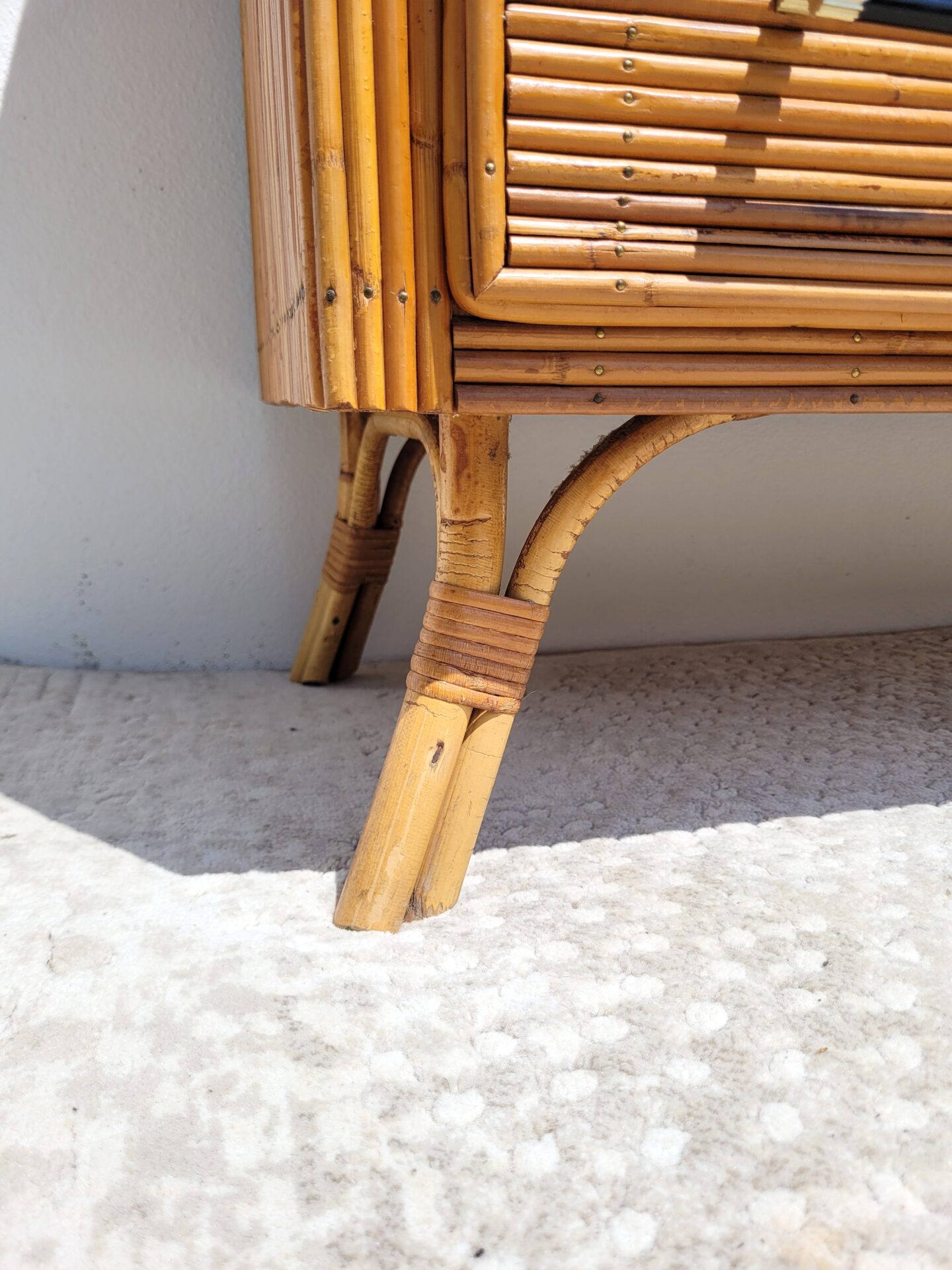 Piètement oblique en rotin également