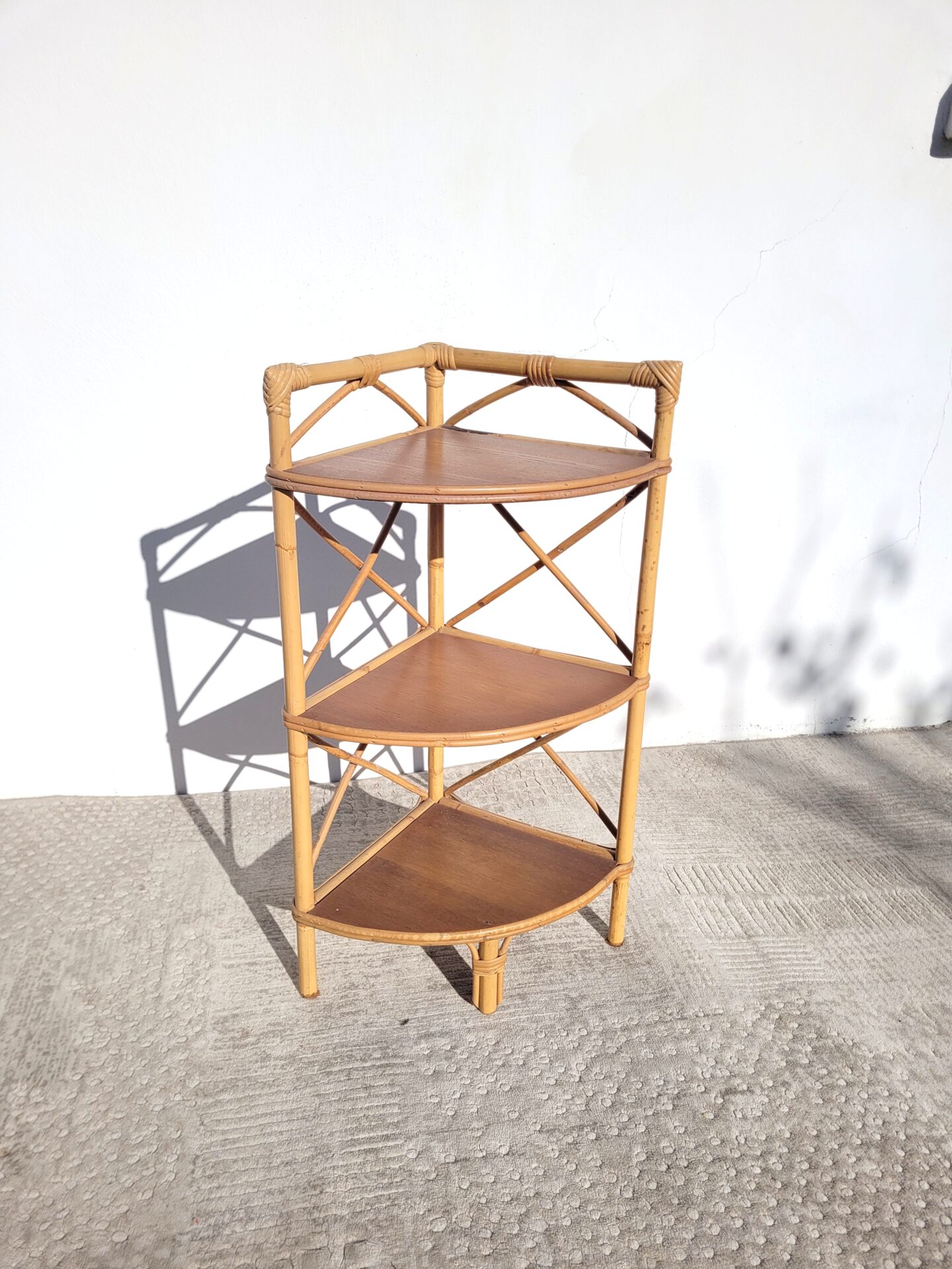 Je vous propose cette jolie étagère d’angle à poser en rotin, un petit meuble léger, solide et très décoratif qui peut trouver sa place dans toutes pièces de la maison.