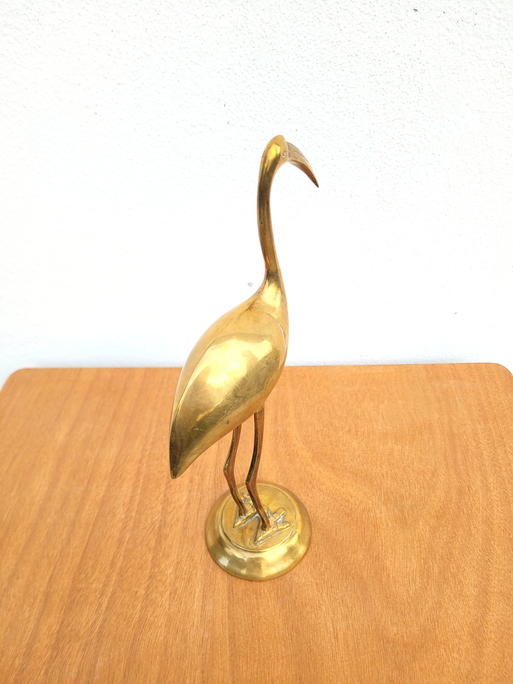 Grande statuette de flamand rose en laiton doré 06Grande statuette de flamand rose en laiton doré