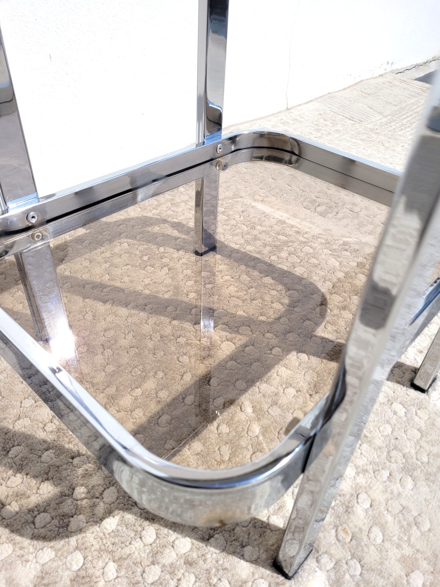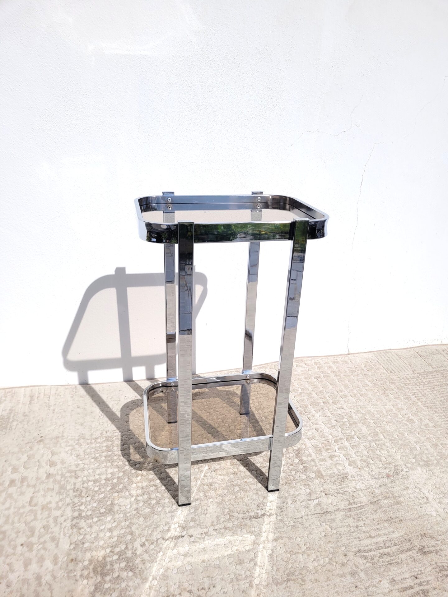 Durable et esthétique avec ce métal chromé, ses deux plateaux en verre fumé (ni rayures ni éclat)