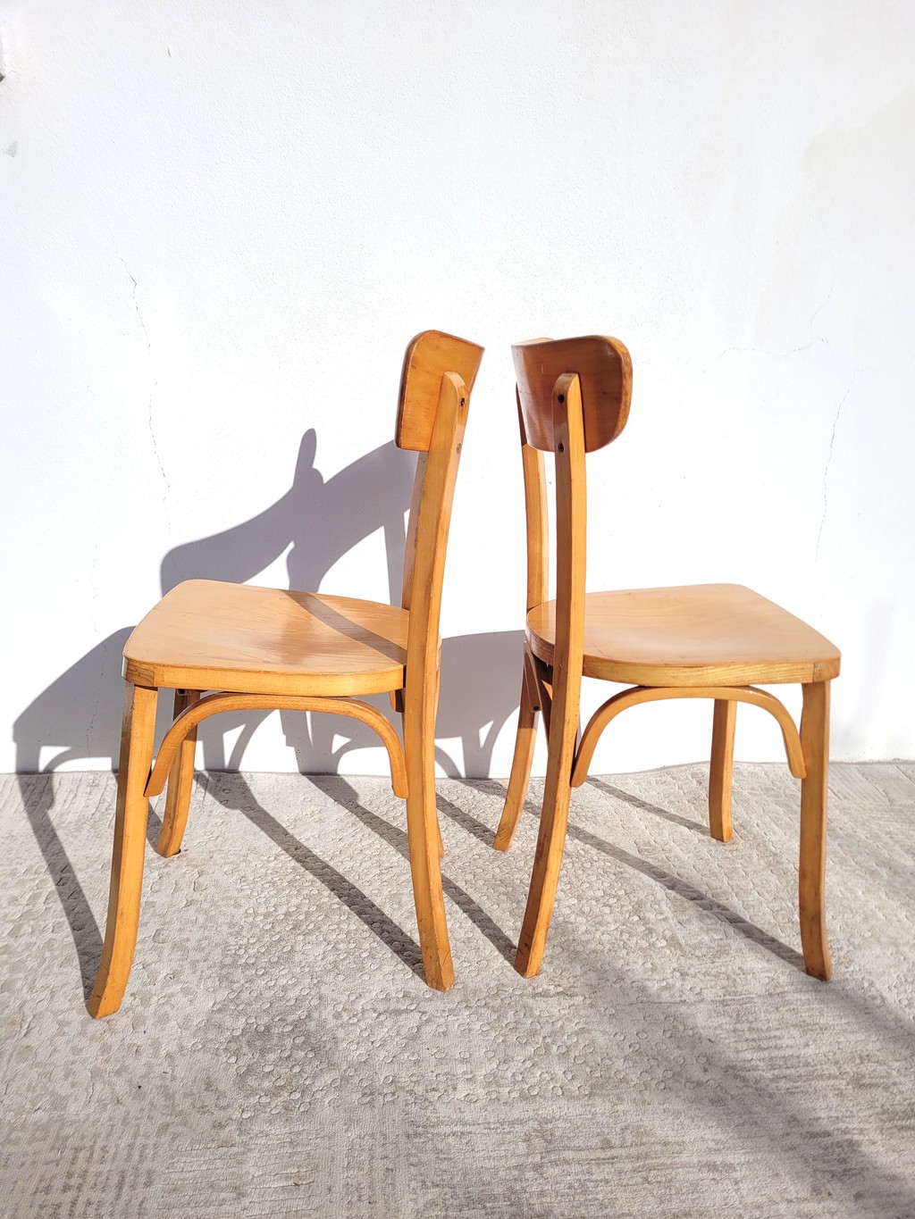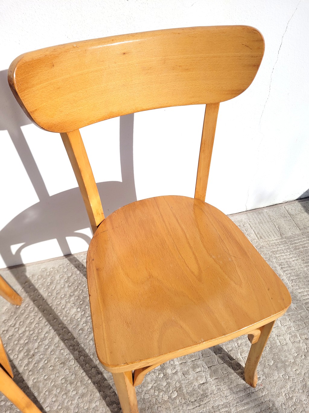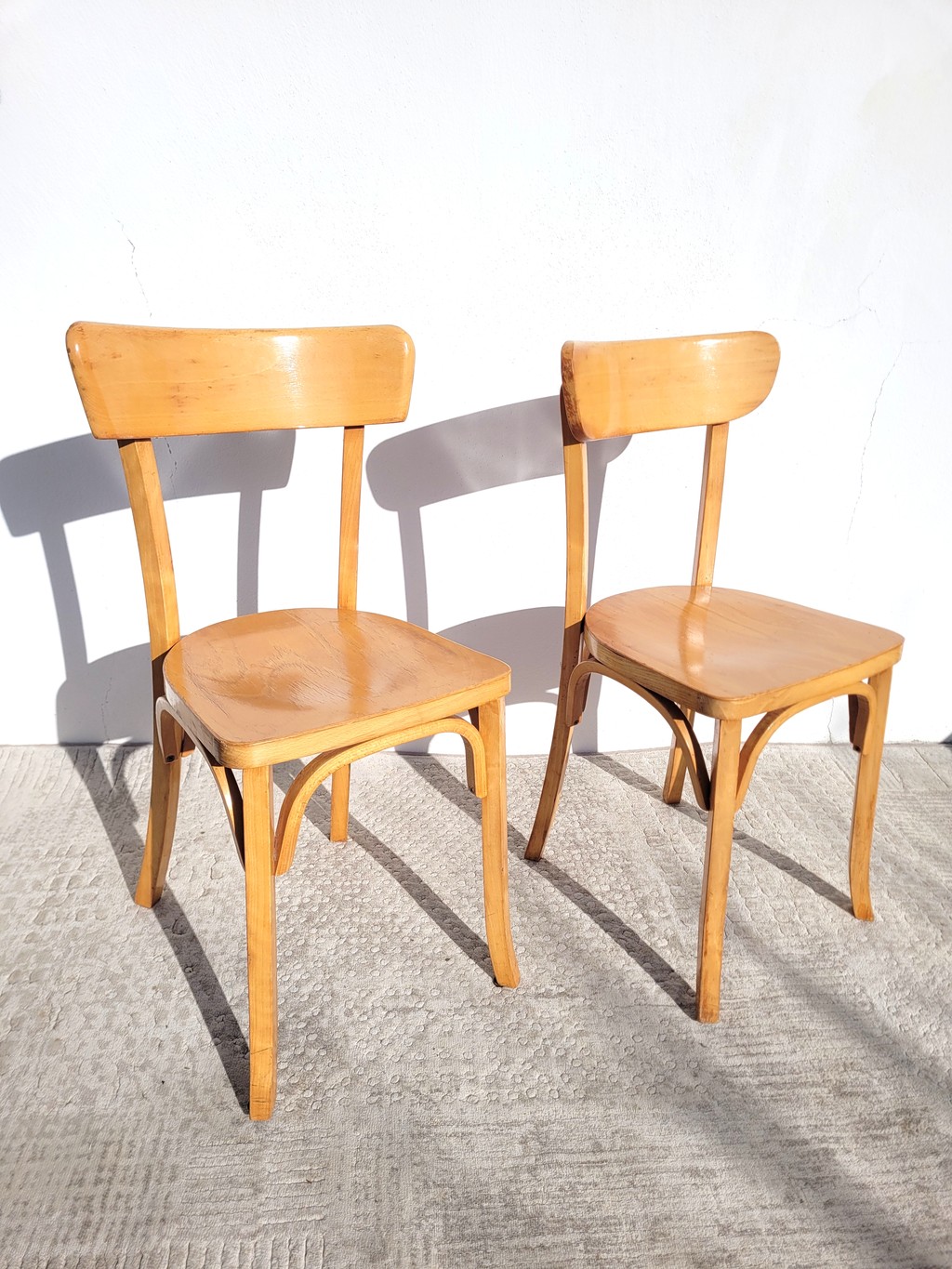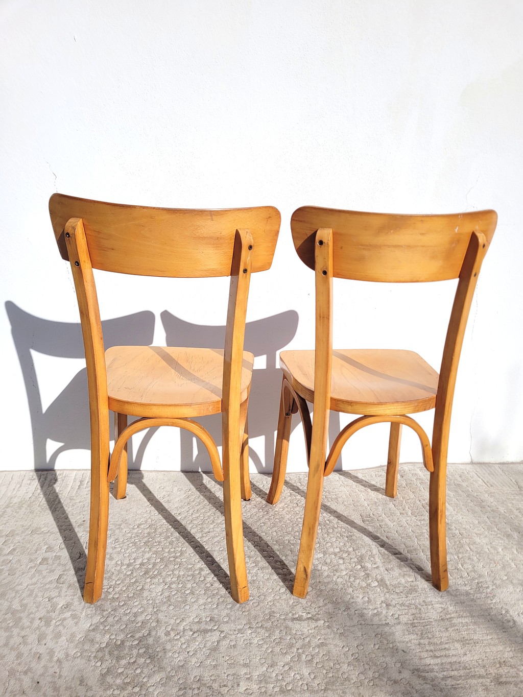 La fabrication est tout à fait dans l’esprit des fabricants Stella, Baumann, Thonet, Luterma etc. Elles sont en bois de hêtre clair vernis.