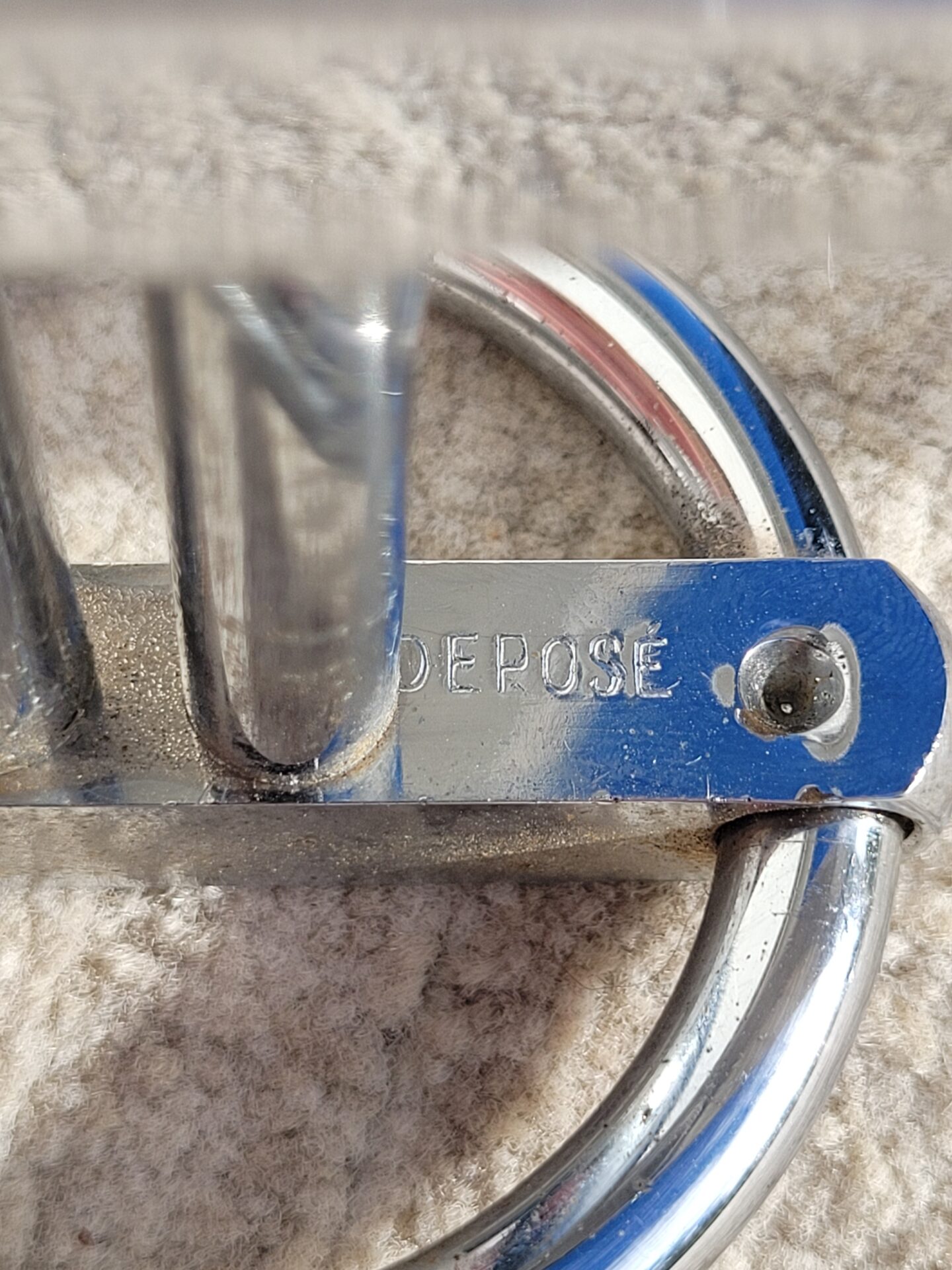 La patère est marquée de la mention « Déposé » au dos, attestant d’une production originale et protégée (non d’une copie). Il n’y a pas d’initiales « JR » sur cette pièce.