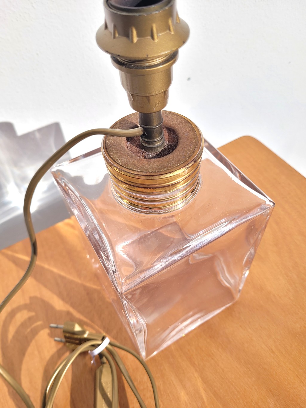 La douille est classique à petite vis (E14), fil et interrupteur doré. Notez un peu d’oxydation à la base, sous la douille voir photo.