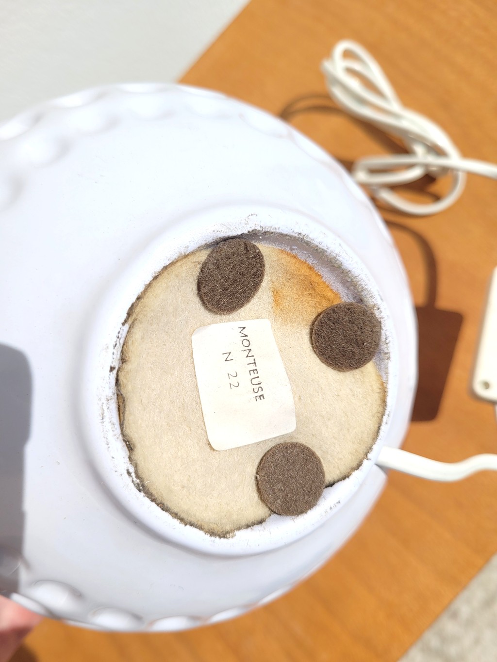 L’électricité d’origine est contrôlée et la lampe fonctionne très bien, douille classique E27 avec sa collerette pour lui trouver un bel abat-jour coordonnées à votre intérieur.