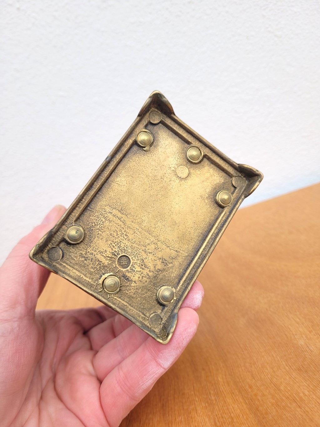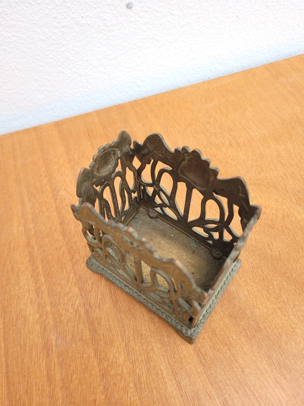 L’objet est patiné par le temps, au choix: il peut aussi facilement retrouver du brillant avec un nettoyant métaux.