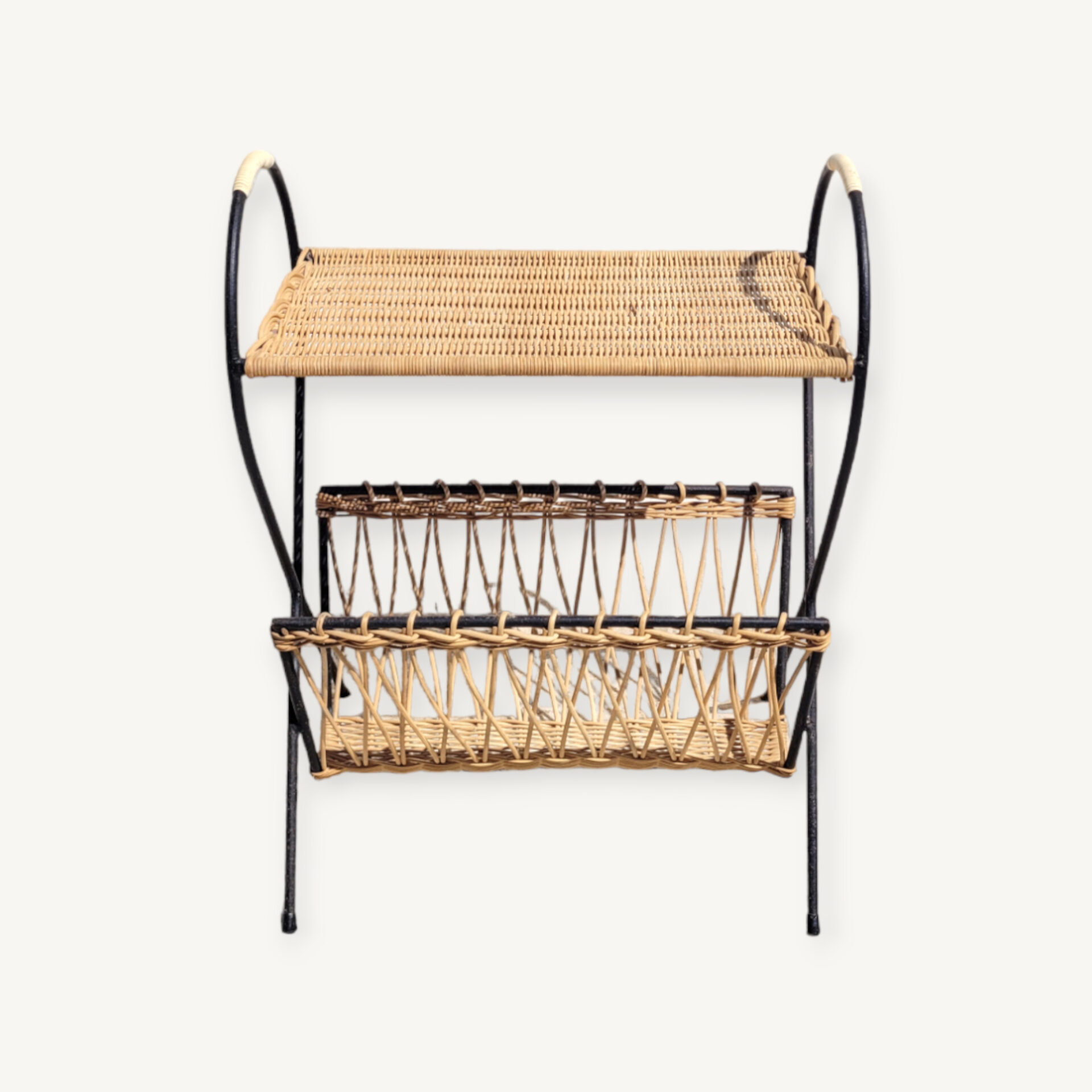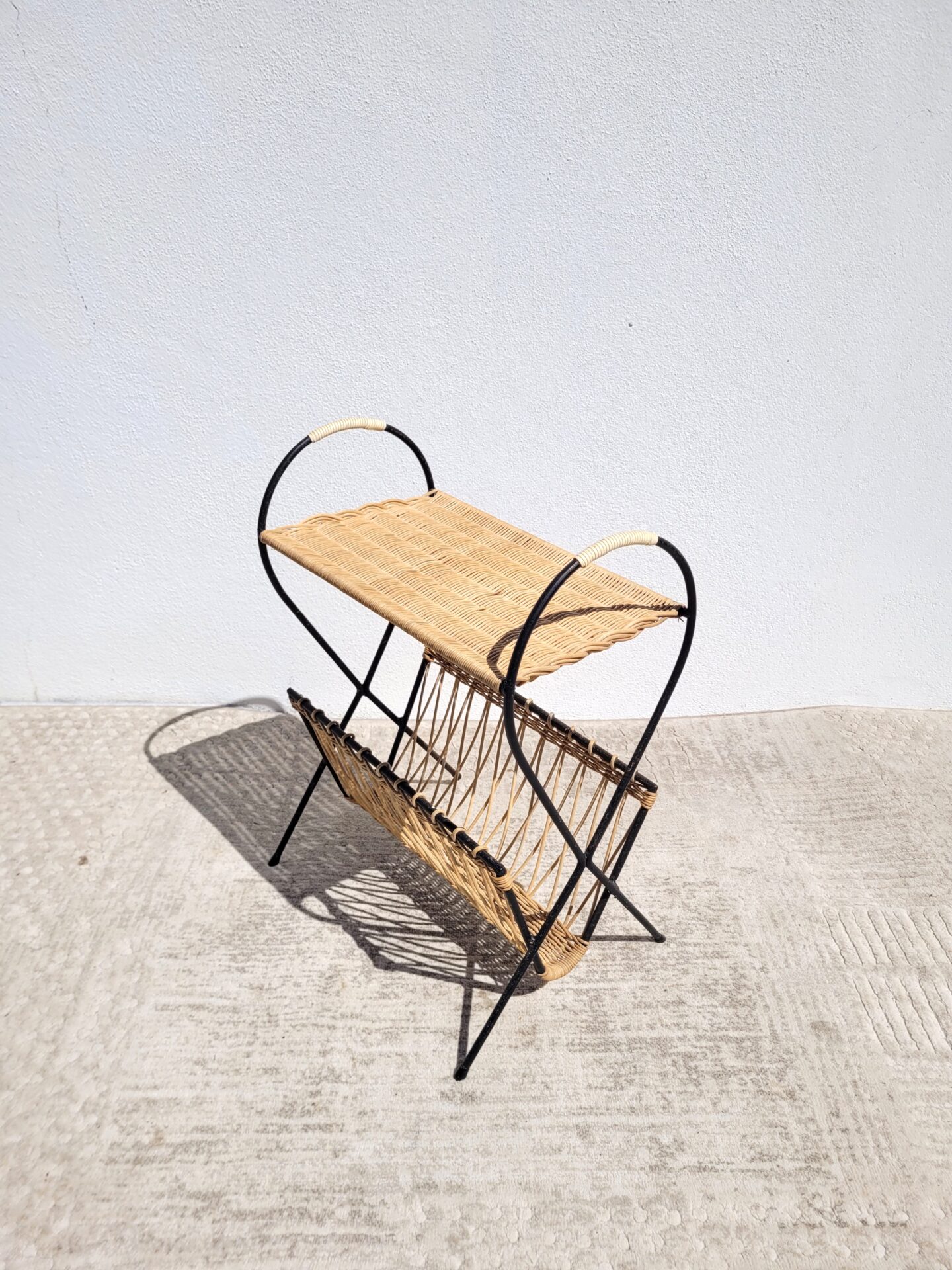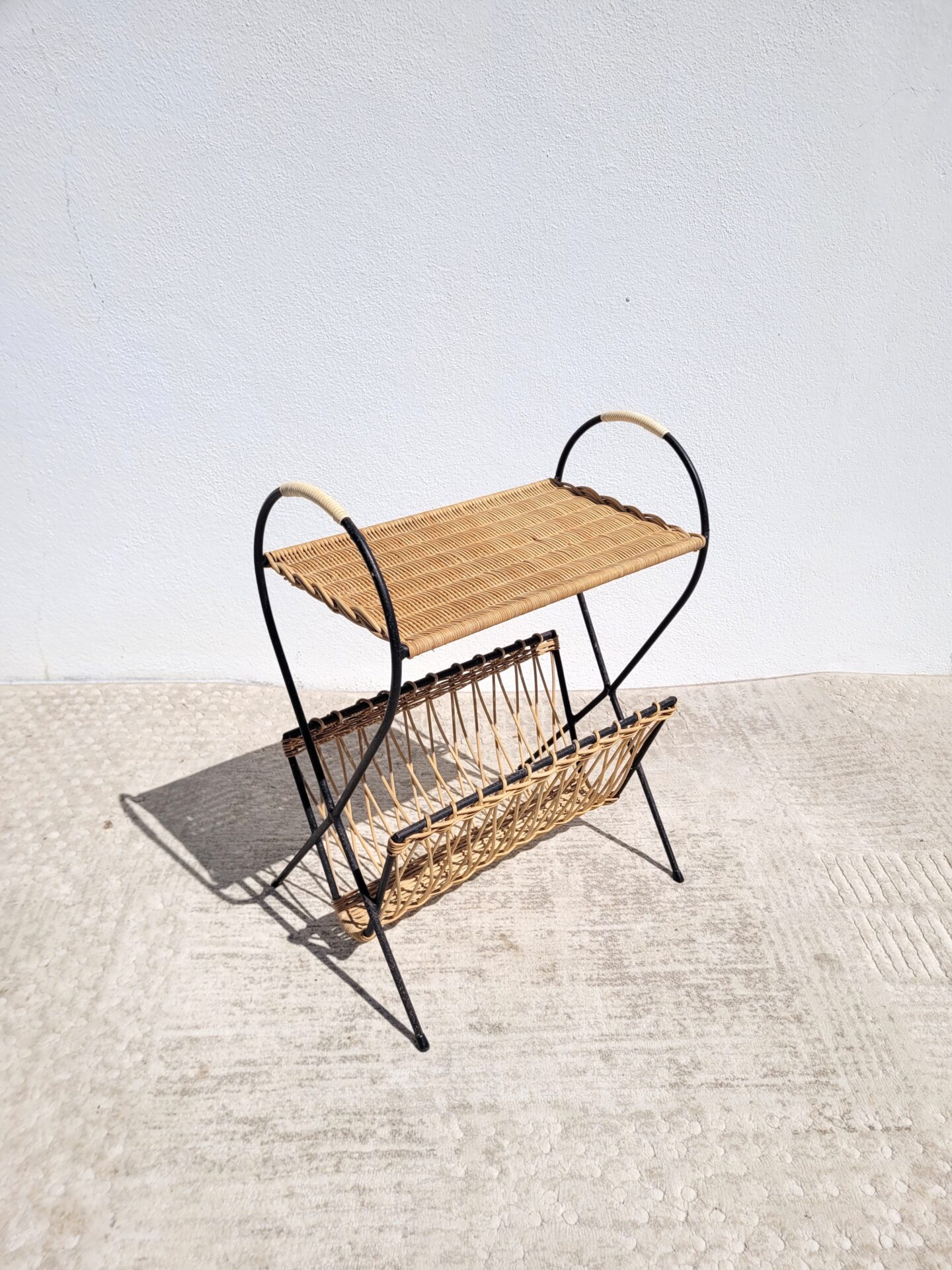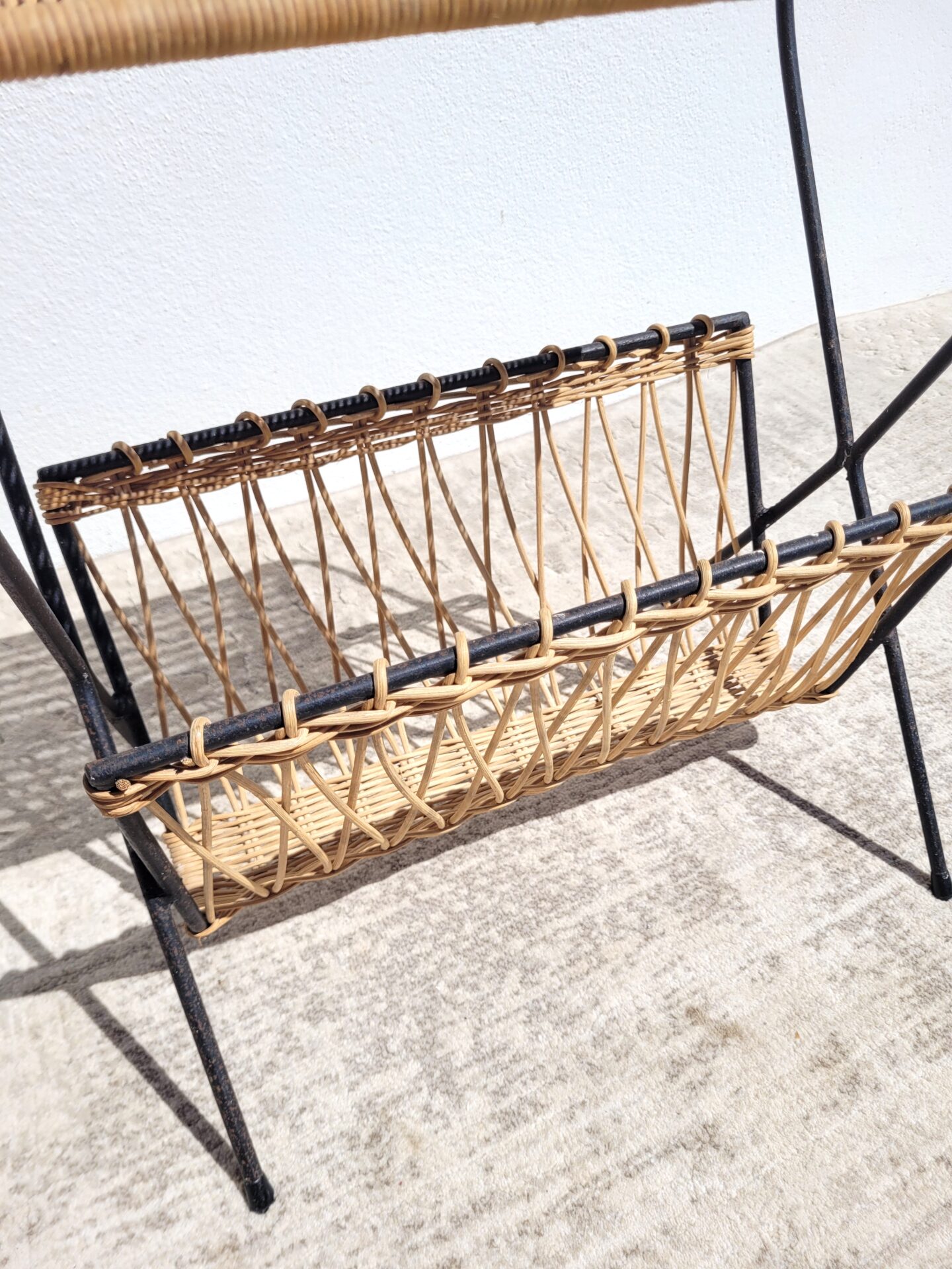 Sellette porte revues rotin 1960 poisson