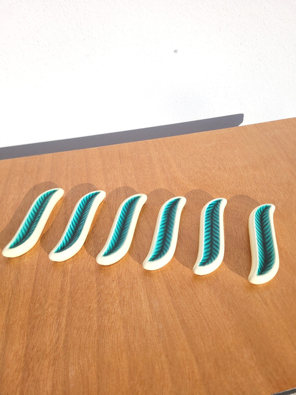 Je vous propose un set de 6 reposes couteau vintage, années 60, 70.