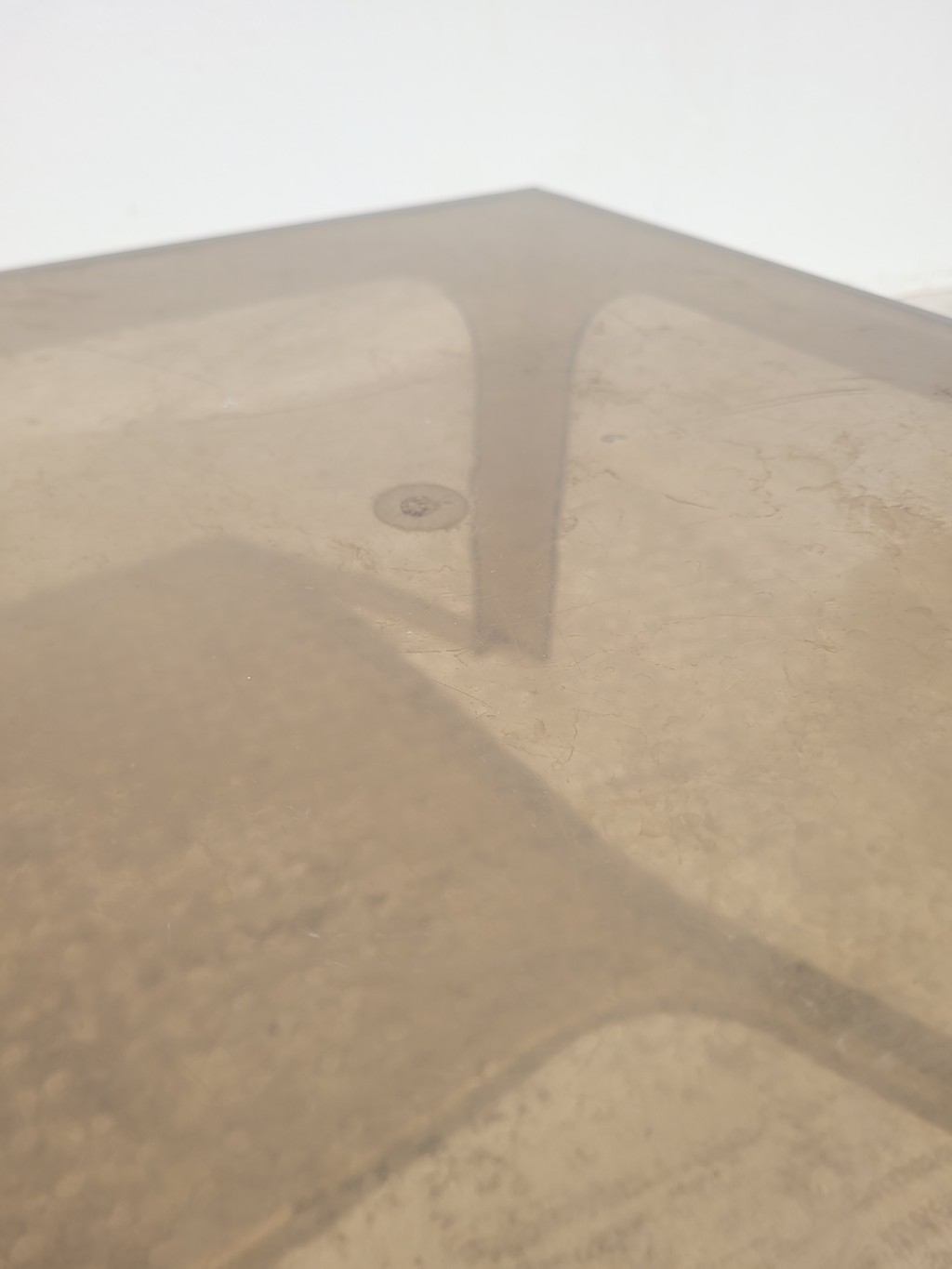 Notez que le meuble présente des traces sur le plateau difficilement visibles en photo, comme souvent avec ce type de matériau. Il s’agirait de la polisher pour retrouver un bel état de surface.