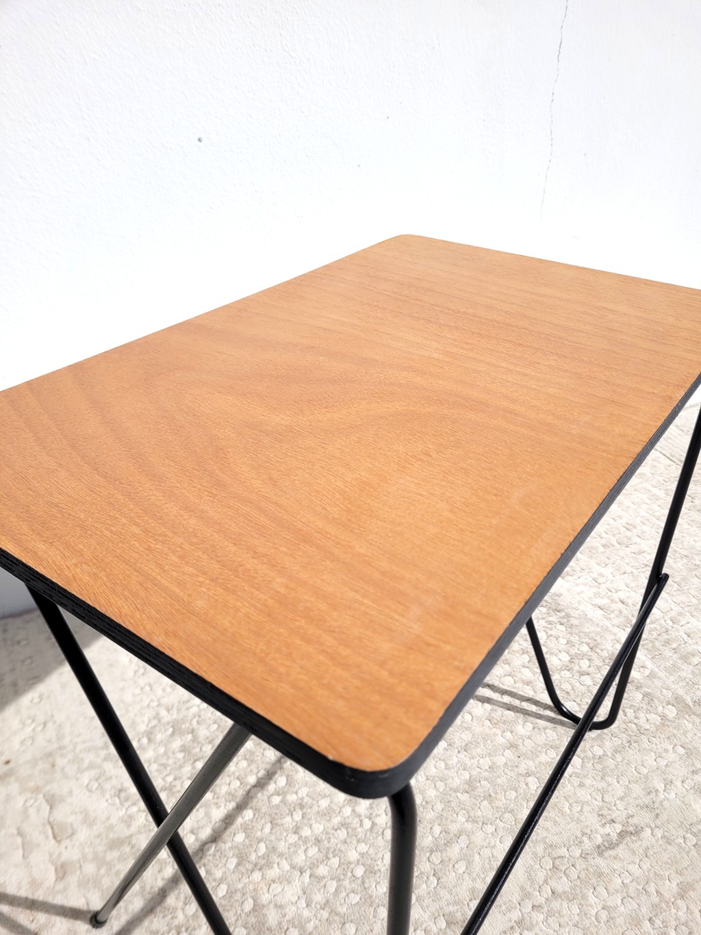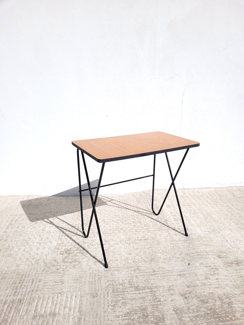 Le piètement en épingle à cheveux est esthétique et d’origine, classique des années 50 / 60. Il a été nettoyé et protégé par un antirouille noir.