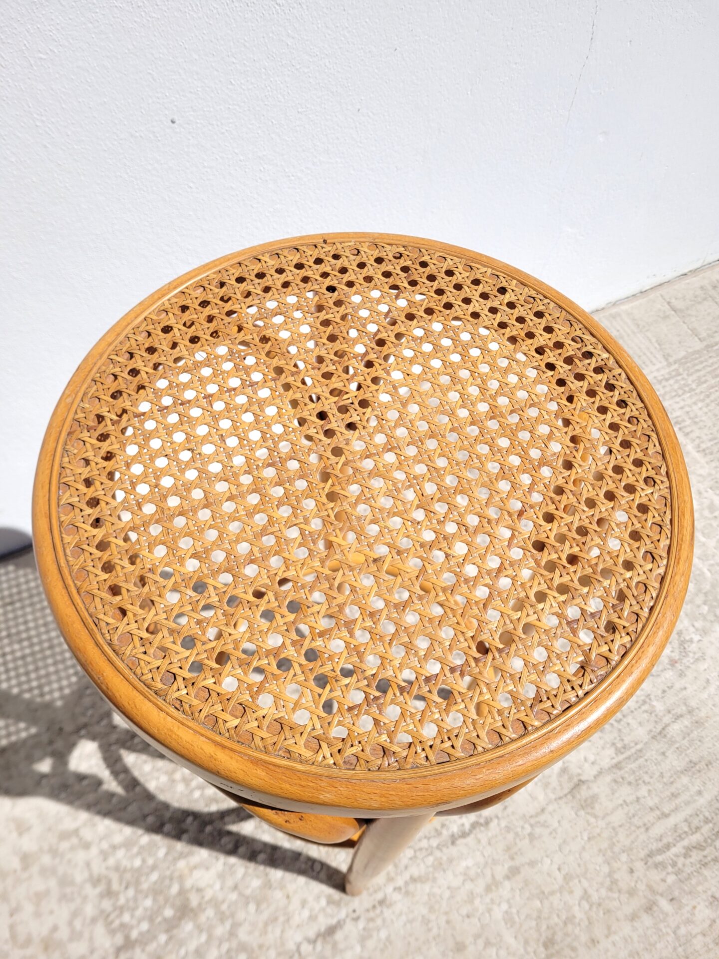 Tabouret en hêtre clair et assise en cannage de rotin / paille de vienne