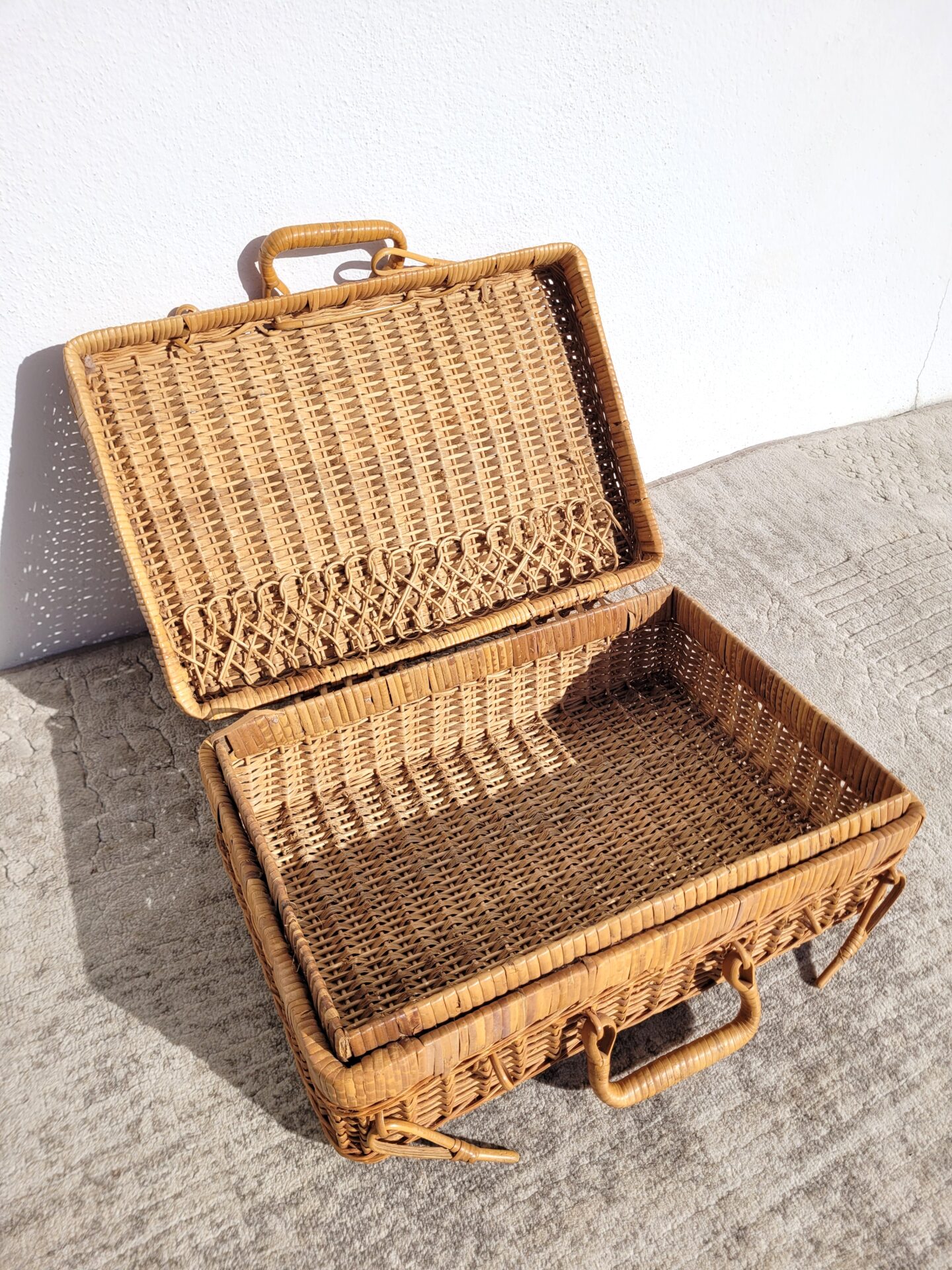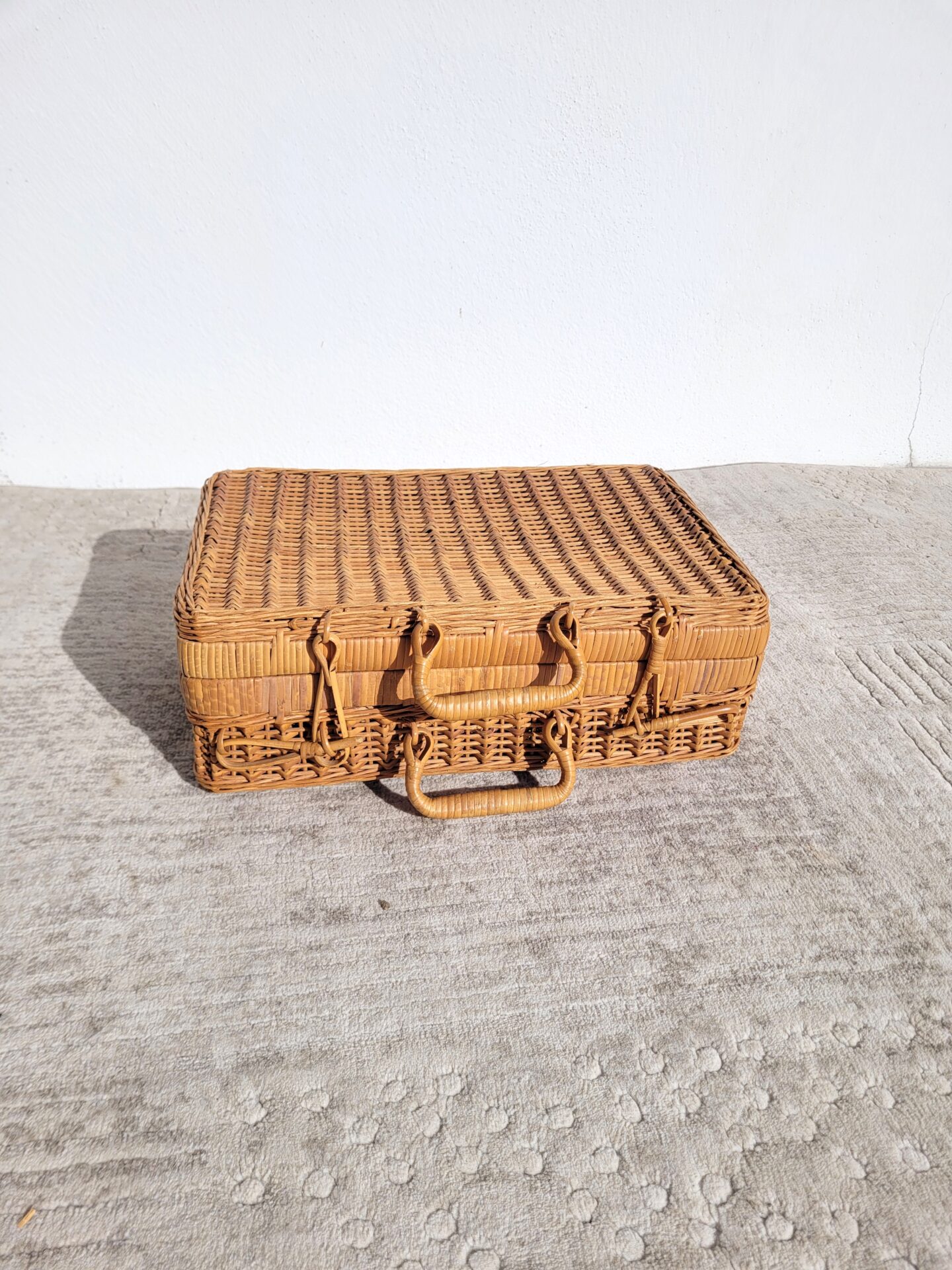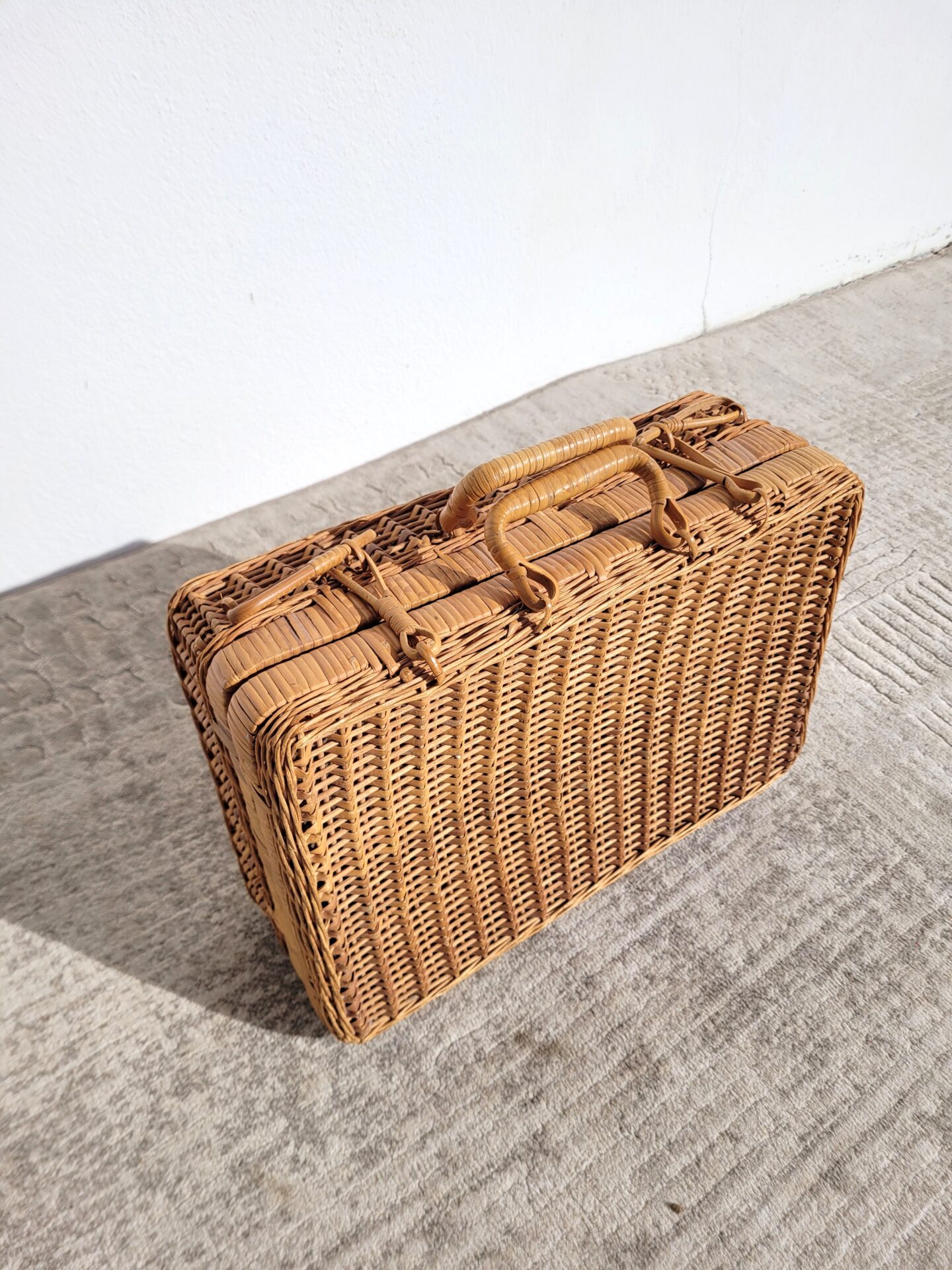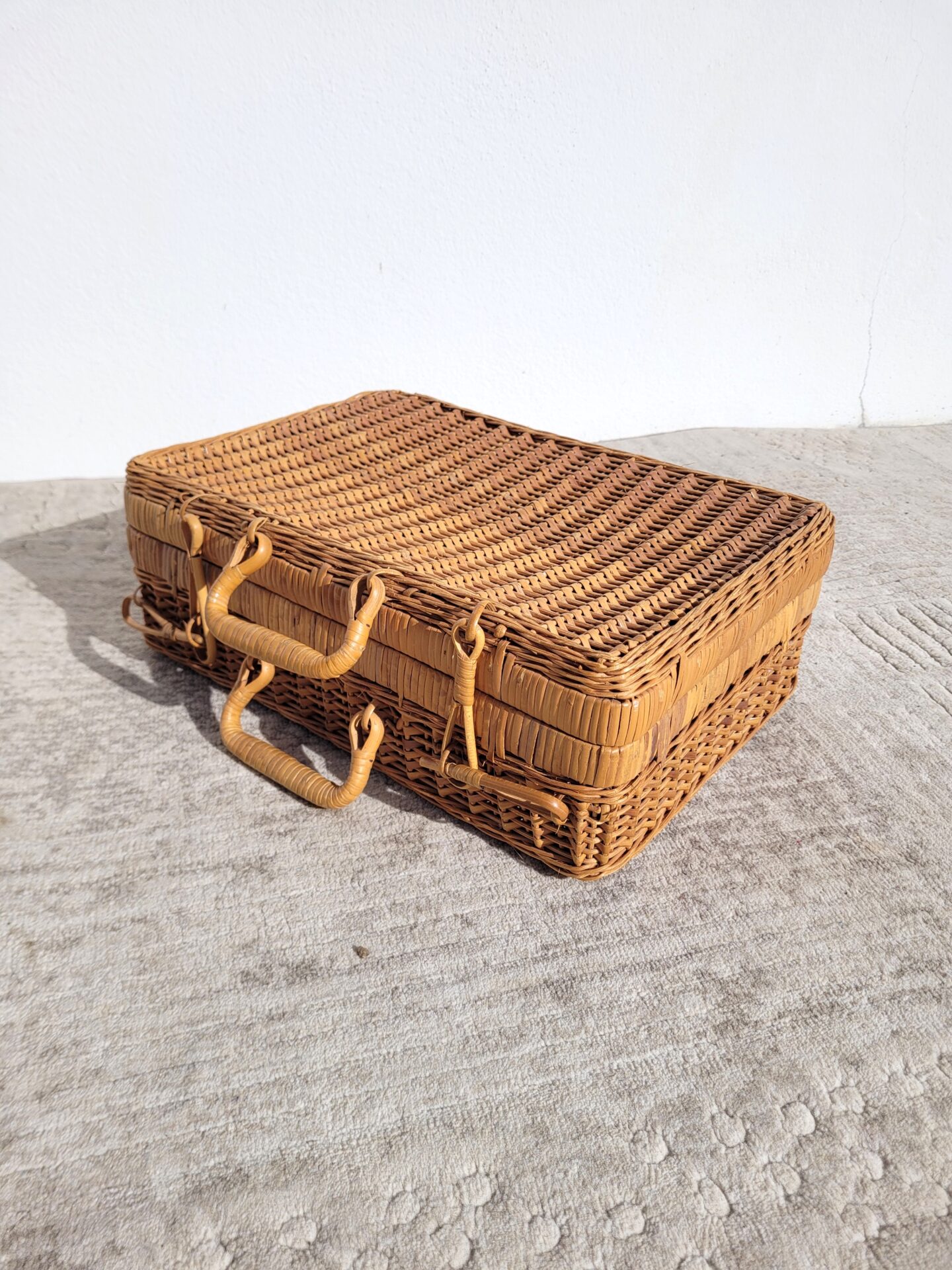 Valise en rotin vintage 1970 mallette taille M